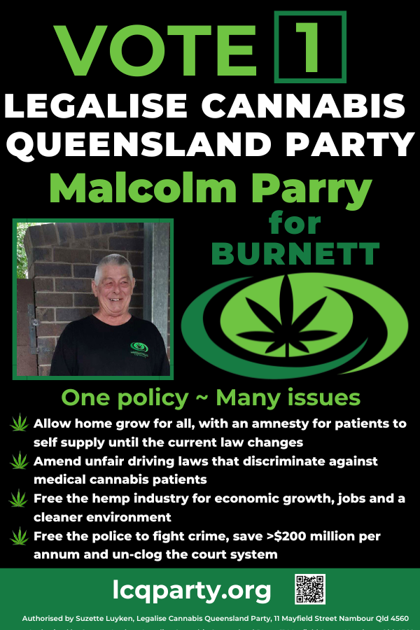 MALCOLM PARRY is a retired Computer Analyst/Programmer and a long-term advocate for home growing cannabis for personal adult use and for lowering the cost for medical use. He has surfed for over forty years and still likes to boogie board when he gets the chance. He is interested in fishing and rock fossicking along with being very conscious of environmental issues, for example, a proposed coal mine in a region’s food bowl is a big no-go! He sees the expansion of medicare to include hearing, vision and oral care as a dire need that must be met. He knows there is more that can be done about the cost of living including by capping rent increases. When it comes to the ‘problem’ of youth crime, he personally believes that by making parents/guardians and/or enablers of the minority of youth whom commit serious crimes more culpable, this will help lower the incarceration rate of Queensland youth. He would like to see an increase in hemp productivity to make smarter sustainable commercial choices, in particular for the building industry, to meet the challenges of the Australian climate. |